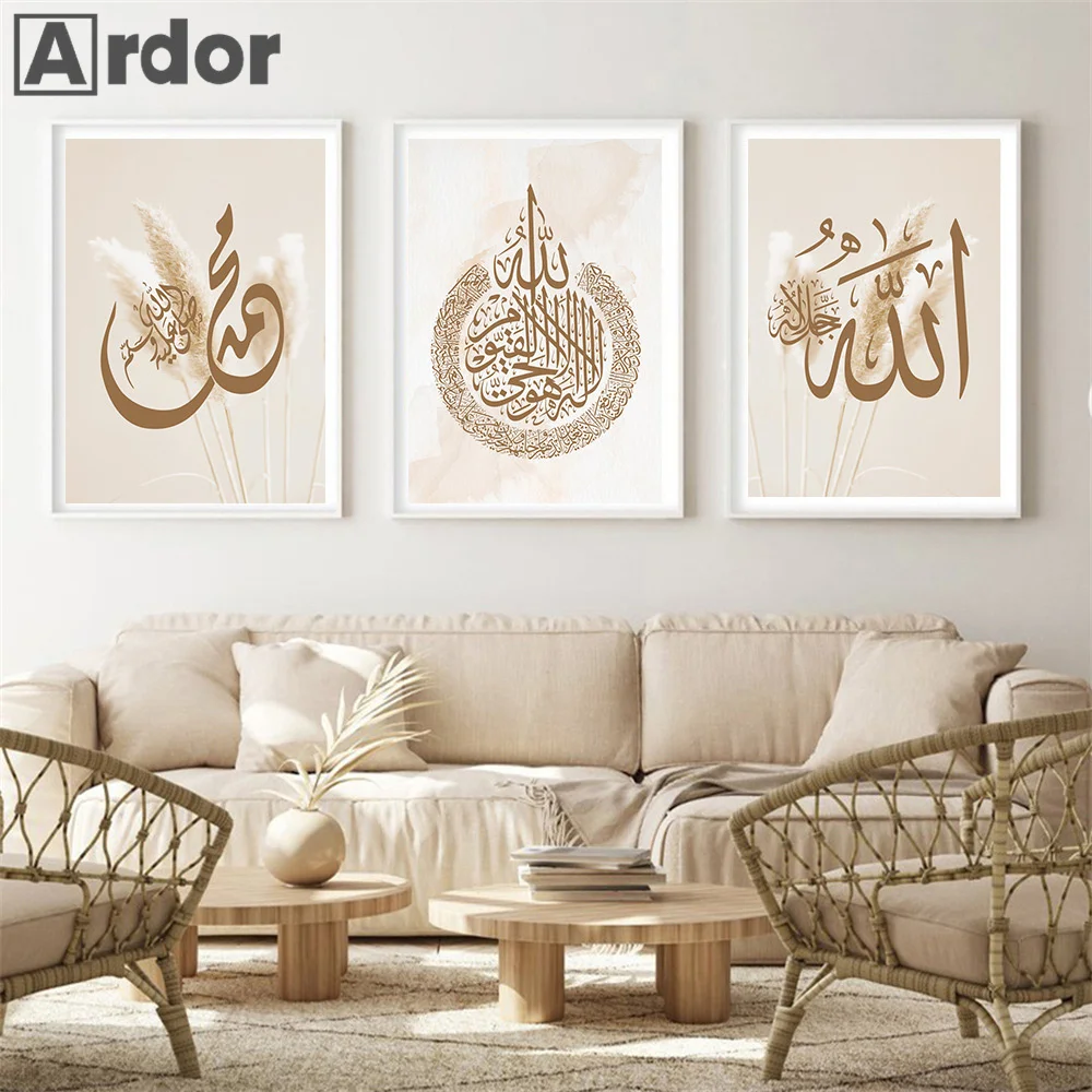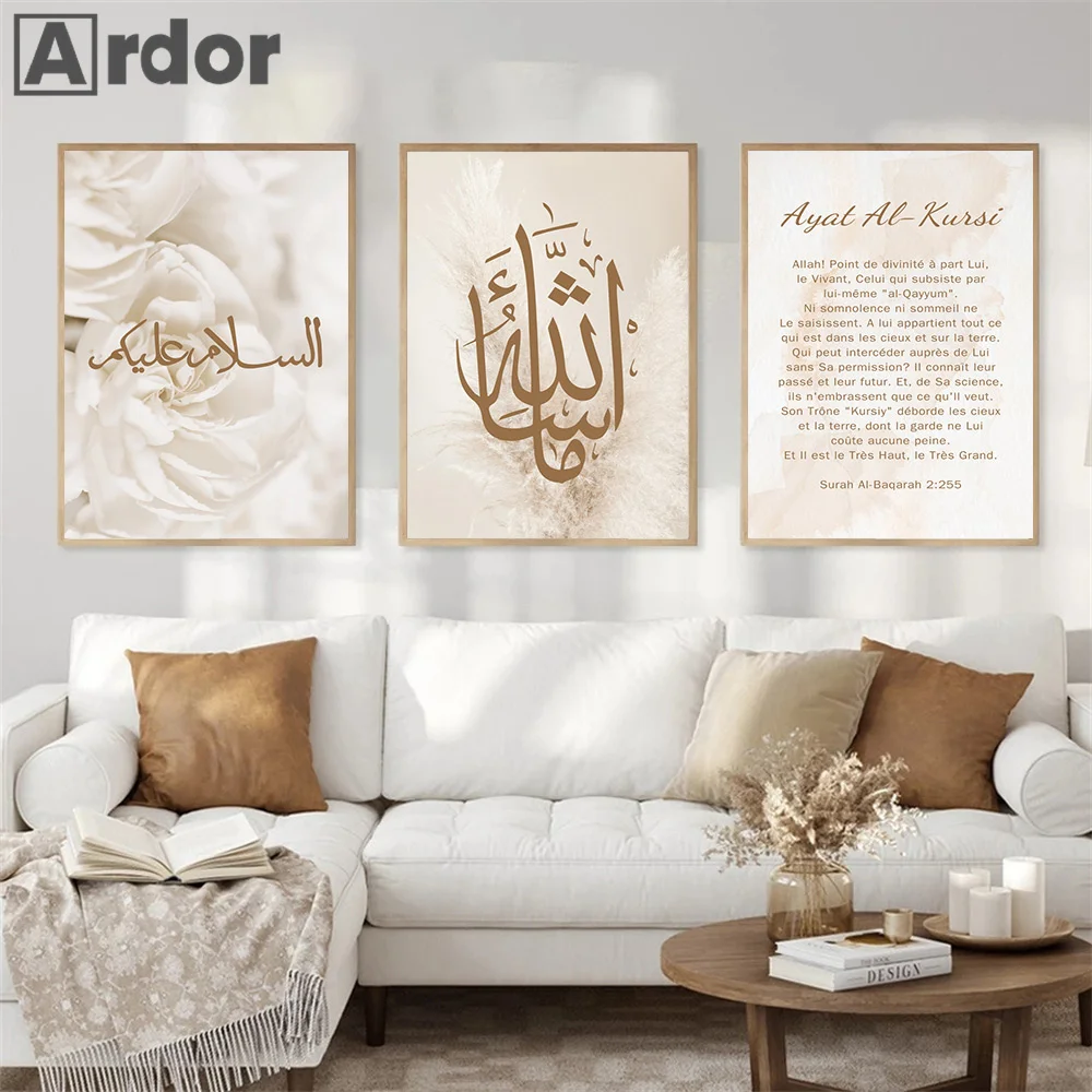 Ayat Al-Kursi Islamic Calligraphy Wall Art Set – Beige Minimalist Canvas